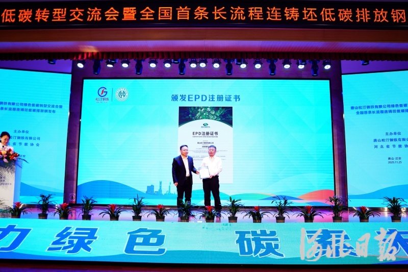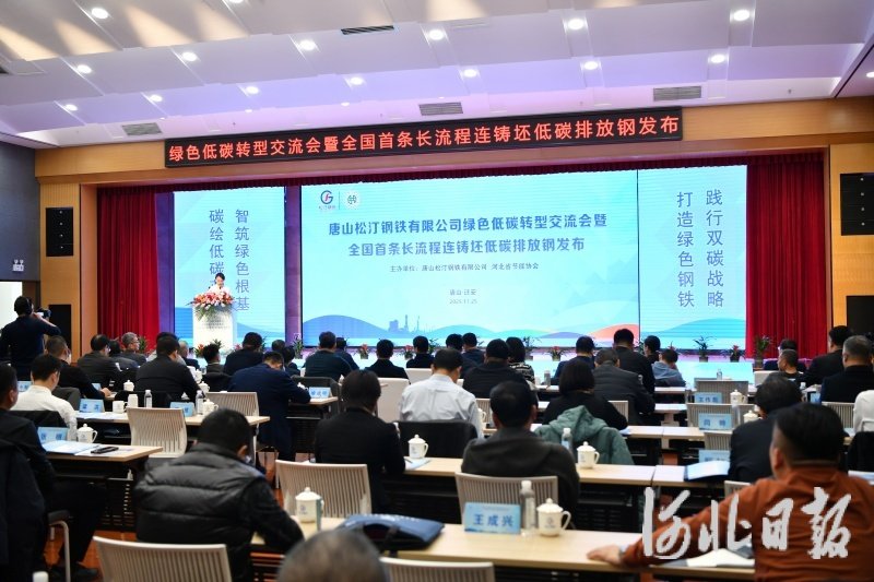 河北日报客户端讯(梁玉水)11月25日,唐山松汀钢铁有限公司绿色低碳转型交流会暨全国首条长流程连铸坯低碳排放钢发布活动在迁安举行。
