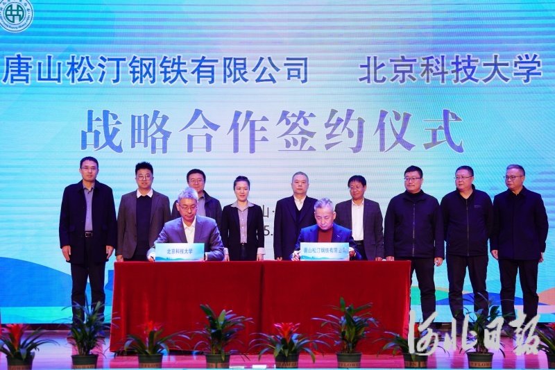 图为唐山松汀钢铁有限公司与北京科技大学签订战略合作协议。