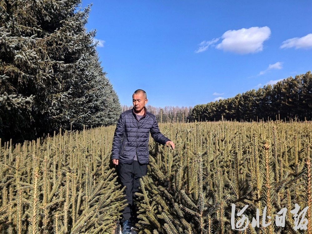 11月12日,塞罕坝机械林场千层板分场营林股股长曾利民正在查看树苗越冬状况。河北日报记者陈宝云摄