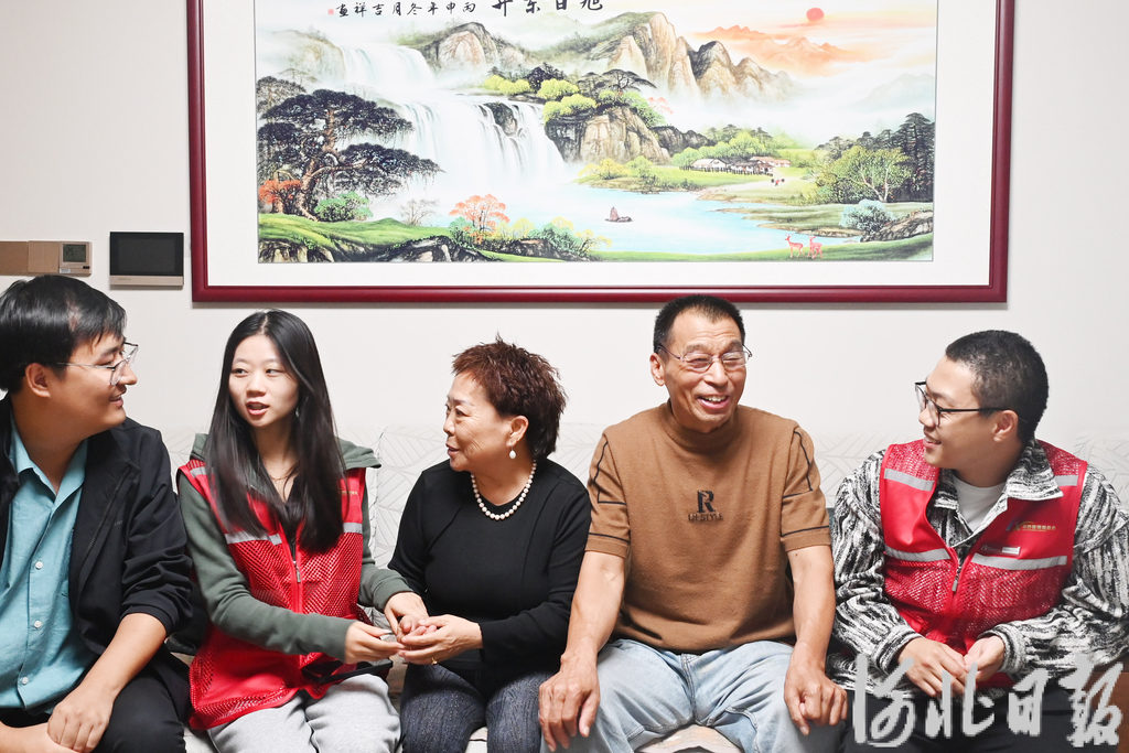 11月13日晚,雄安新区容西片区馨水社区工作人员(左一、左二、右一)在馨水东湾小区居民家进行“星光夜访”。河北日报记者 刘光昱摄