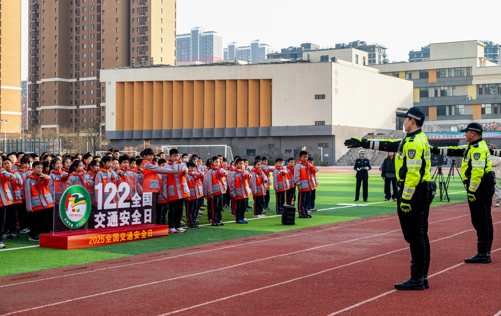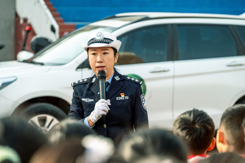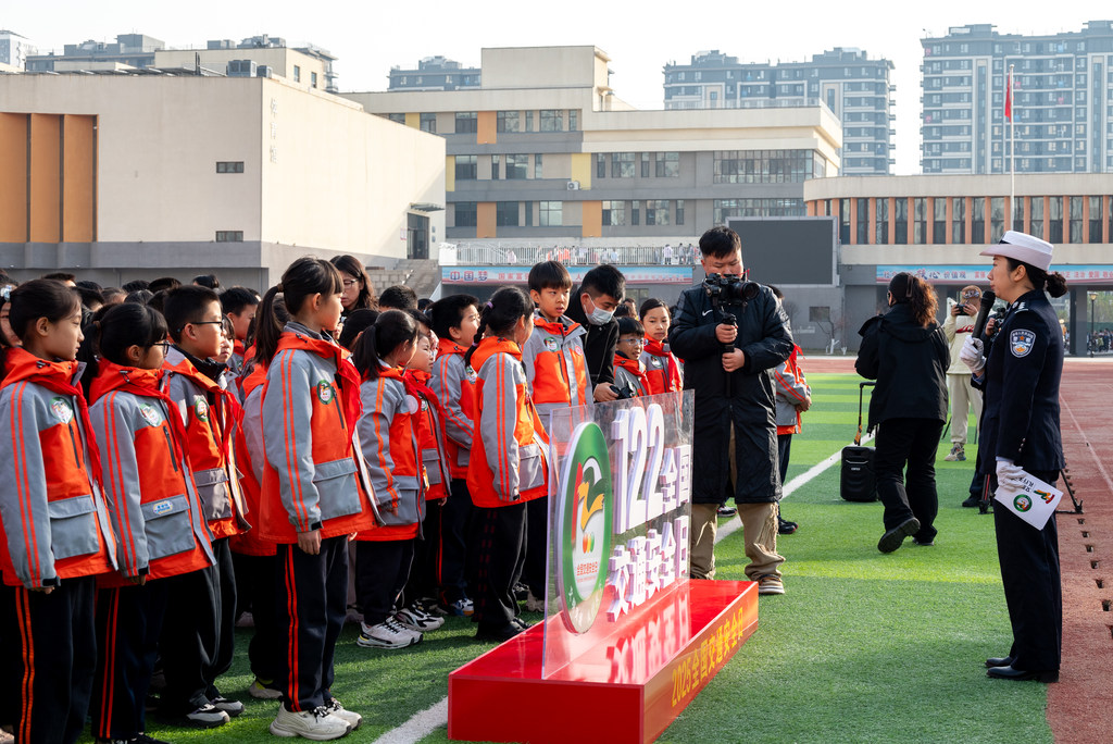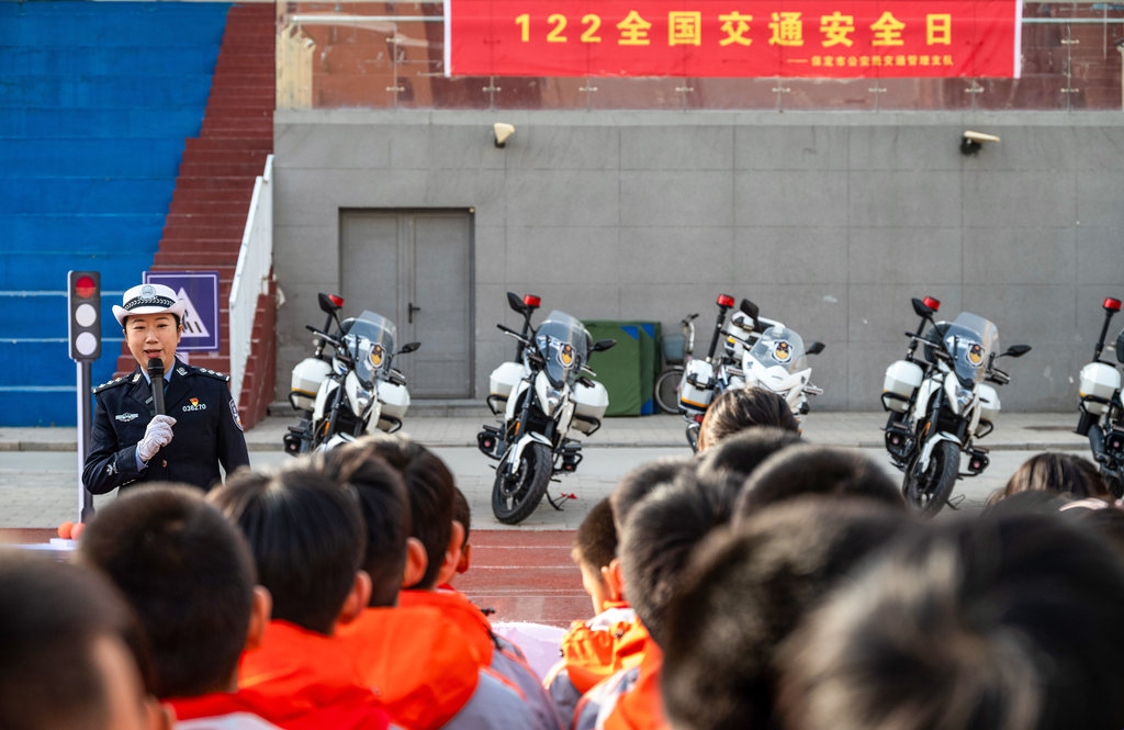 11月28日,公安交警向保定市新秀学校学生讲解交通安全知识。