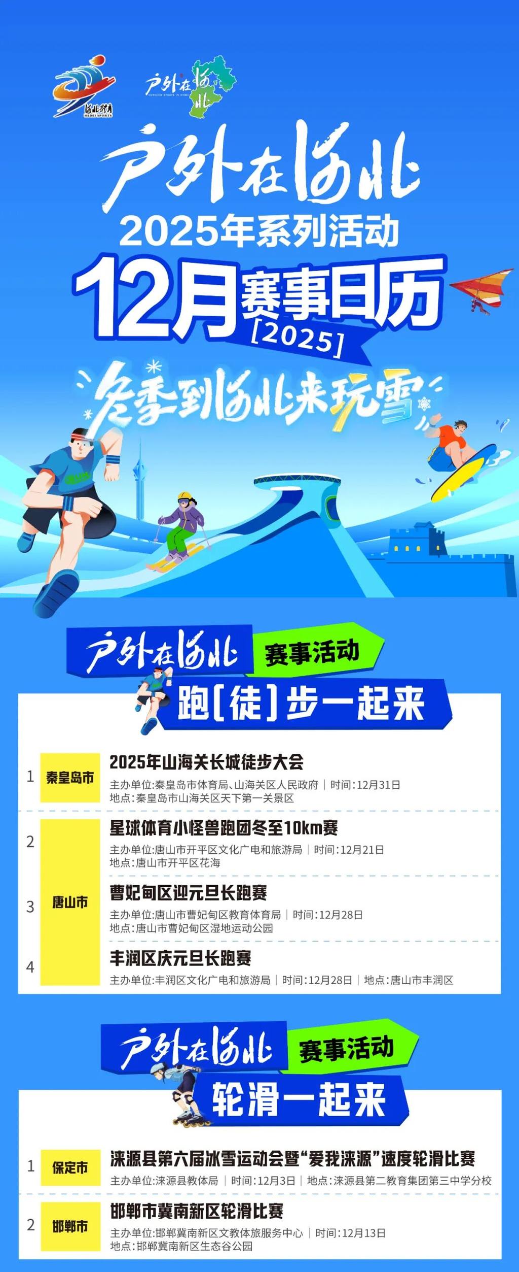 当冬季的风掠过燕赵大地,“户外在河北”十二月的赛事活动计划也如约而至,持续为冬日注入活力与热情。