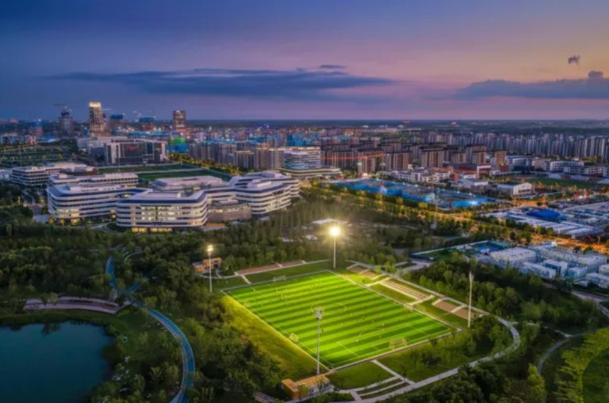 出8号门向东,是新落成的居民住宅小区,疏密有度、绿树成荫。如今,已有十多万名回迁群众搬进了这样的雄安“好房子”。循着一条水系慢跑,用心感受“十五分钟”生活圈。养老驿站、社区食堂就在家门口,再走几步就到了社区图书室,不远处色调鲜亮的建筑是幼儿园、小学,物资齐全的便利店、菜店转角可见,临近的金湖公园还遍布着全天免费可用的直饮水点。沿步道奔跑,还能看到孩子们在游乐场嬉戏,年轻人在球场上挥汗如雨,老年人伴着乐声跳舞健身。用心倾听,这分明是一曲美妙的“雄安好声音”。