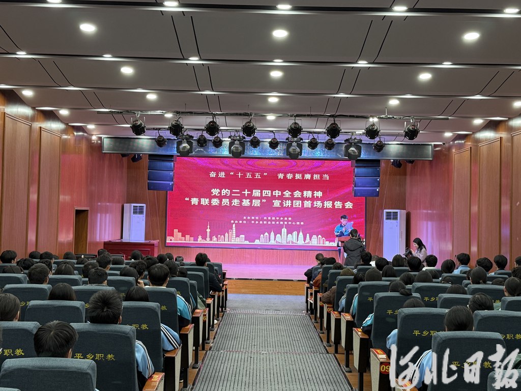 河北日报客户端讯(郑筱凡)11月28日,平乡县“青联委员走基层”宣讲团首场党的二十届四中全会精神报告会在该县职教中心举行,充分发挥青联委员的示范引领作用,凝结广大青年思想和行动,为平乡高质量发展凝聚青春智慧与力量。来自全县各界的青年代表、团员代表、基层团干部及群众代表共180人现场聆听。