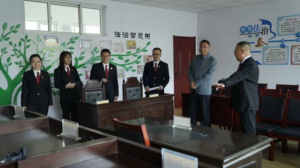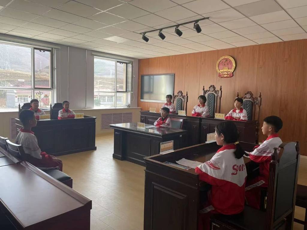 捐赠设备,筑牢实践根基。活动现场,朝阳湾人民法庭向木兰实验小学赠送一套高标准的模拟法庭设备,严格参照真实法庭配置,展现法庭庄重威严。