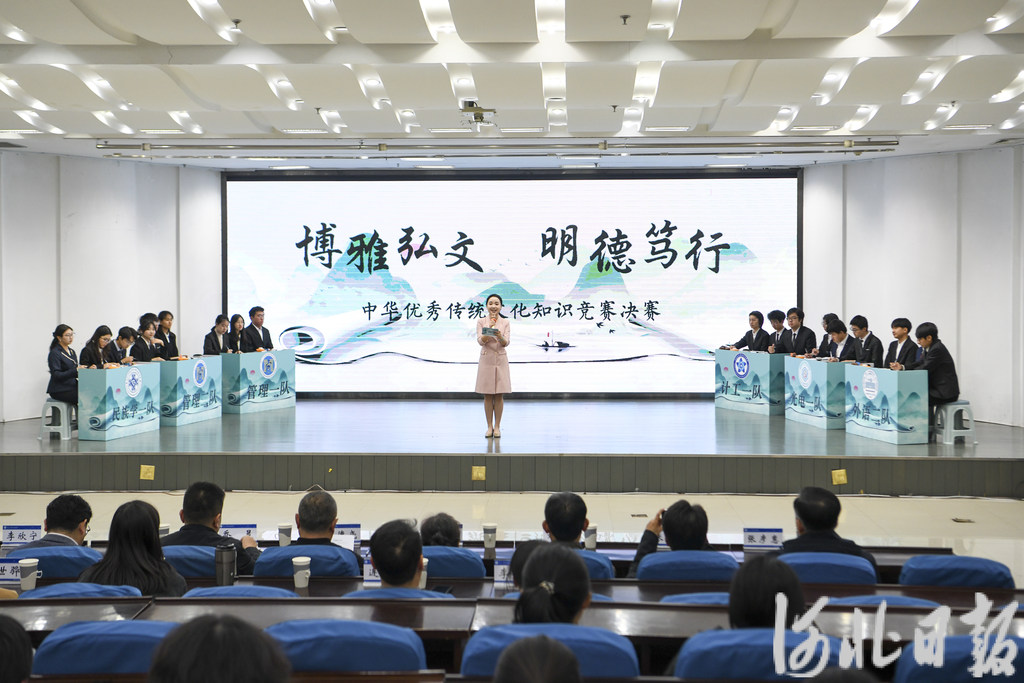 河北日报客户端讯(记者张辉)11月30日晚,东北大学秦皇岛分校“博雅弘文明德笃行”中华优秀传统文化知识竞赛决赛在学校大学会馆学术报告厅拉开帷幕,各参赛队伍围绕诗词成语、历史典故、习俗礼仪、文化艺术等方面展开多轮竞答与阐释,为师生呈现了一场既考验知识积累、又激发思辨活力的文化活动。