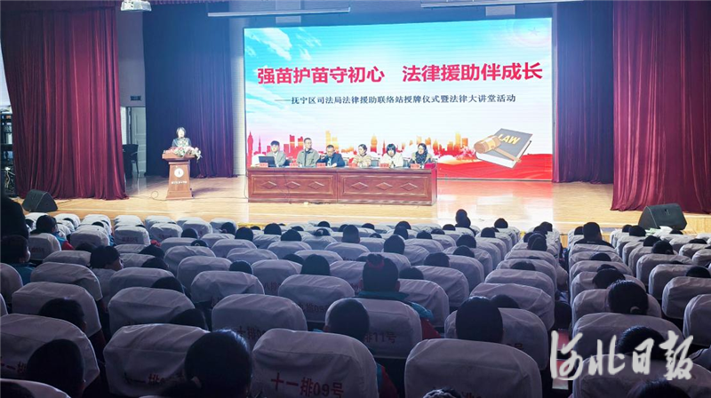 河北日报客户端讯(张晓磊、宋金花)11月26日,秦皇岛市抚宁区司法局、抚宁区法律援助中心、河北骊宁律师事务所在抚宁区金山学校联合开展“强苗护苗守初心 法律援助伴成长”法律大讲堂活动,为200余名师生送上了一场干货满满的法治盛宴。