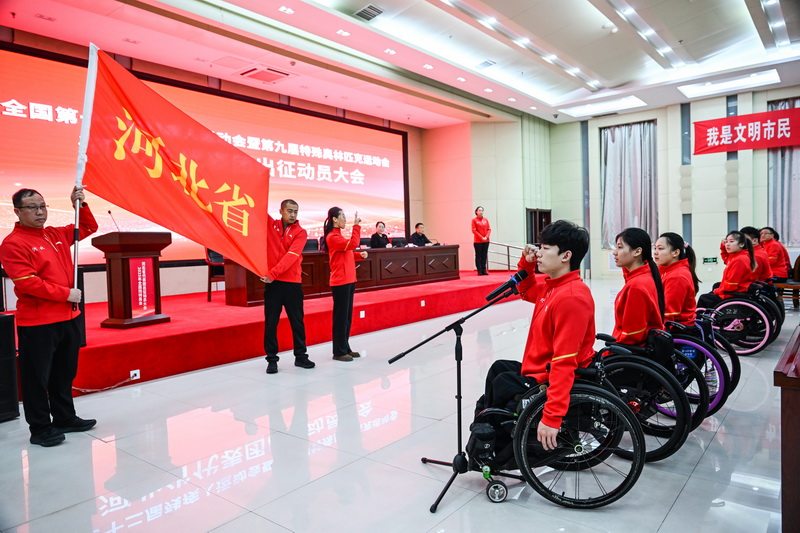 12月3日,全国第十二届残运会暨第九届特奥会河北省代表团出征动员大会现场。
