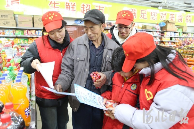 图为普法宣传员在超市内向市民发放普法宣传资料并宣讲。吴海民摄
