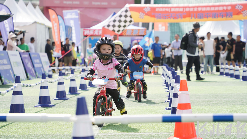 6月28日,2024(第四届)京张全季体育旅游嘉年华在张家口市崇礼区国家跳台滑雪中心启动。图为当日现场举行的“骑乐无穷”儿童平衡车赛。河北日报记者 王雪威摄