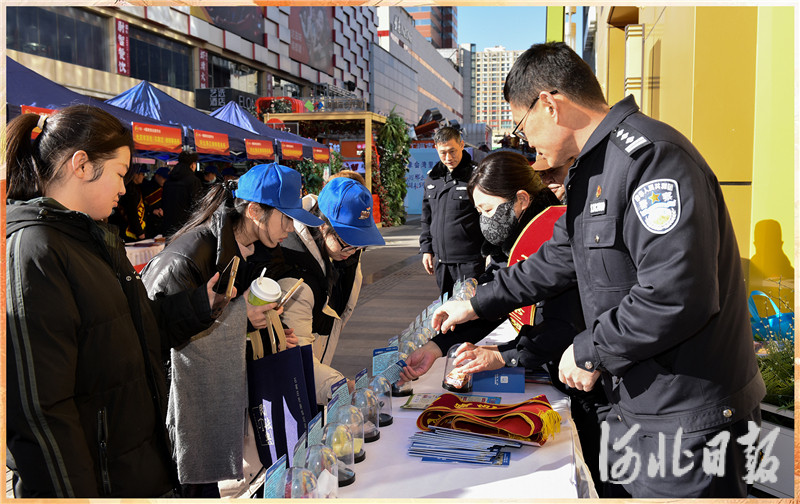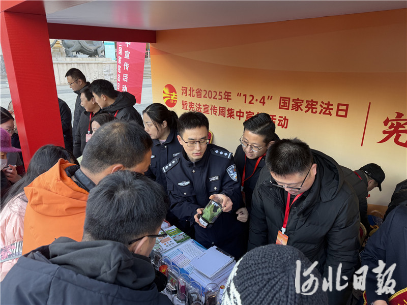 12月4日,国家宪法日当天,该所“春雨”禁戒毒宣传队走进石家庄市文化广场,民警通过展示仿真毒品模型、发放图文宣传页、现场讲解答疑等形式,揭露新型毒品伪装陷阱,吸引过往群众踊跃参与互动。