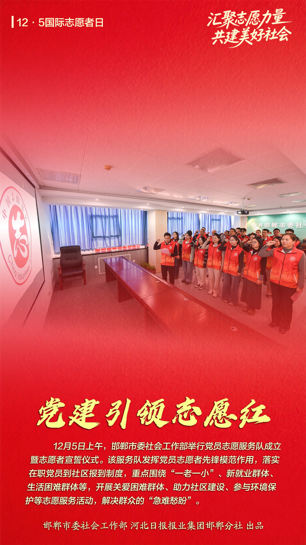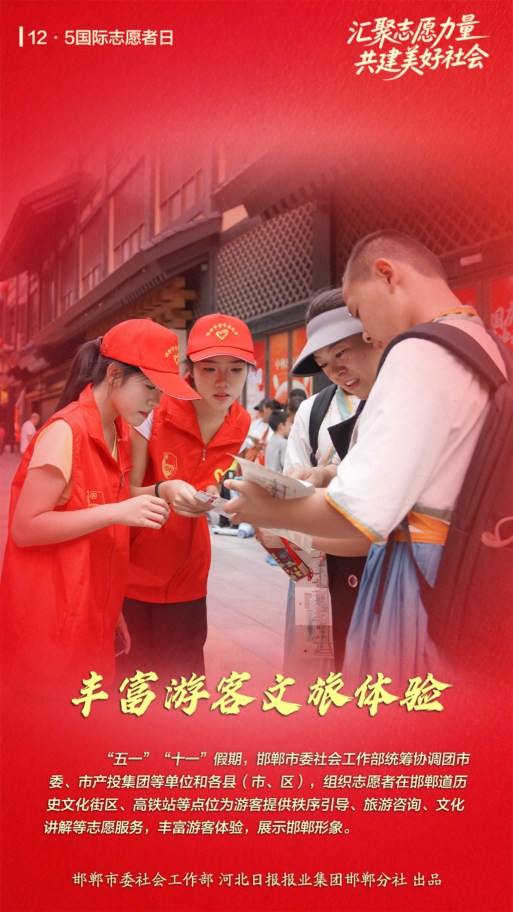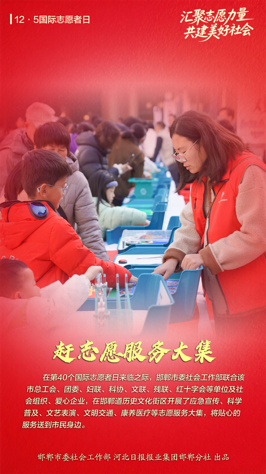 12月5日是第40个国际志愿者日,今年的活动主题为“汇聚志愿力量 共建美好社会”。今年以来,邯郸市委社会工作部组织广大志愿者,围绕“一老一小”、新就业群体等重点人群开展志愿服务,传递真善美,传播正能量,“志愿红”正成为这座城市最温暖的底色。