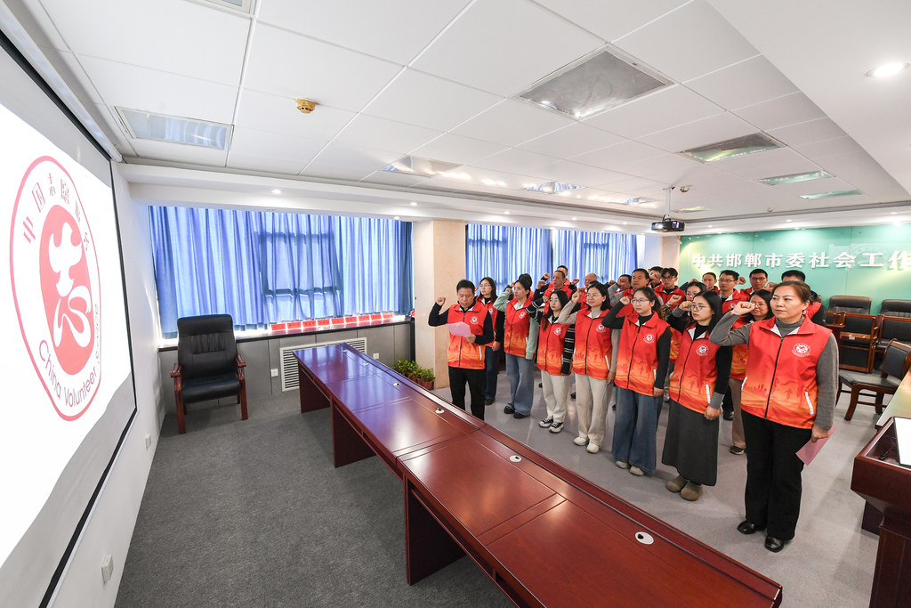 12月5日上午,邯郸市委社会工作部举行党员志愿服务队成立暨志愿者宣誓仪式。