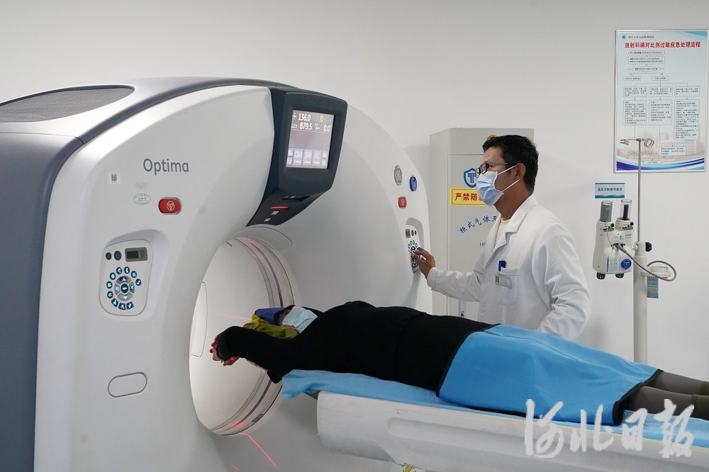 近日,在巨鹿县西郭城镇卫生院,医生用先进的CT扫描仪为患者做腰椎椎体平扫。胡良川摄