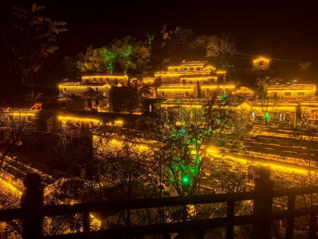 伴随彩灯次第亮起,邢台市信都区英谈村恰似一座金色城堡。(资料图片)