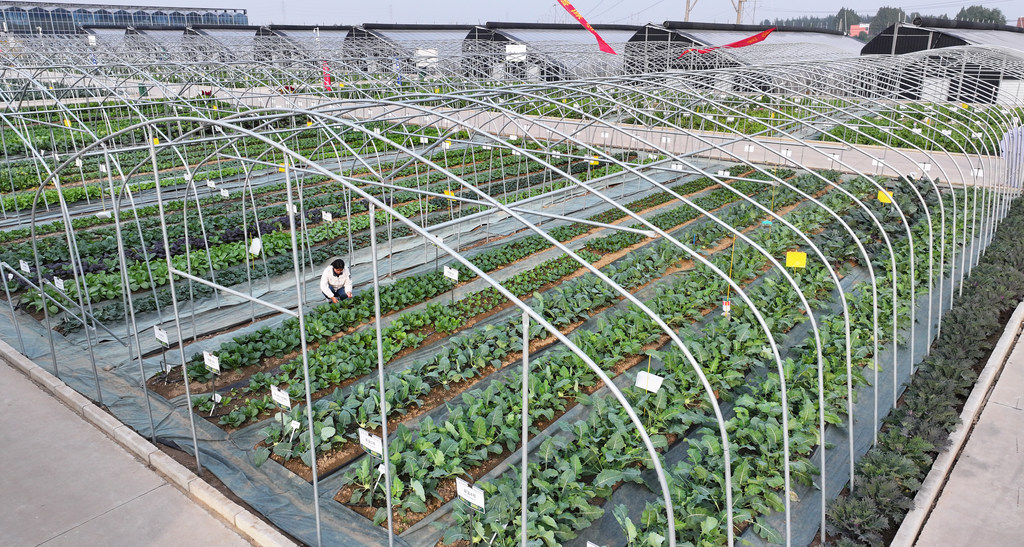 11月4日,位于邢台市任泽区的河北捷如美农业科技开发有限公司农业展示示范园区,技术人员在观察十字花科蔬菜试验品种长势。