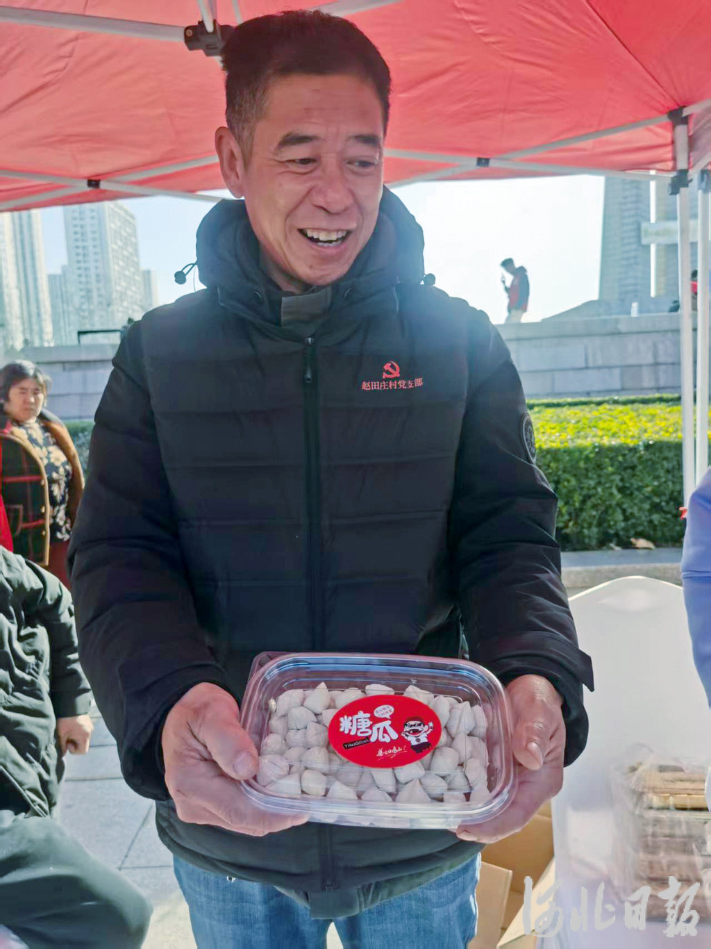 农产品特色展销区,工作人员在介绍特产。 李金花摄