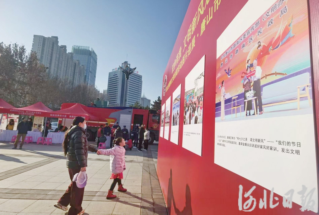 “美丽的风——时代新风浸润行动”专区精心设置了群众性精神文明创建活动图片展,以多维场景、沉浸式体验让文明理念深植人心。“文明创建图片巡展”依次展开,路南区“厚养薄葬新风尚”的真实案例,直观呈现传统习俗从“重形式”到“重内涵”的转型;路南区“新时代 新家乡”主题思政课尤为吸睛,红色研学、非遗体验的鲜活场景,在触摸家乡文脉中增强文化自信,让观众在城市变迁的温暖瞬间中增强文化自信与家国情怀;社区志愿者帮扶独居老人、市民自发清理公共环境等文明瞬间被一一定格,让文明理念变得可感可触。健康生活、文明养犬等内容图文并茂,文明知识一目了然。