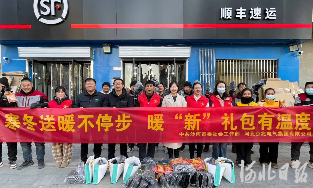 河北日报客户端讯(李宏伟)12月2日,沙河市委社会工作部联合爱心企业河北京兆电气集团有限公司为美团外卖小哥、顺丰快递员及圆通集散中心一线工作人员等300多人送上暖“新”礼包,用实际行动传递关爱温暖,提升新就业群体的凝聚力和向心力。