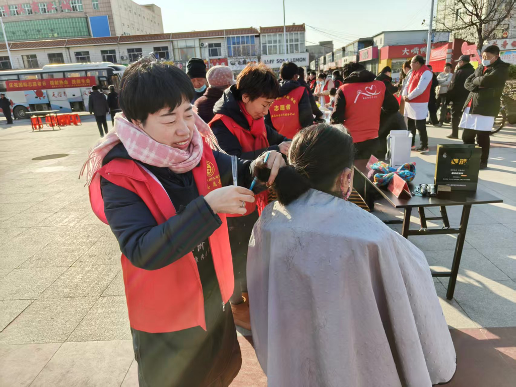 爱心志愿者免费为群众理发