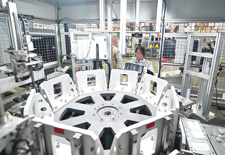 在廊坊华安汽车装备有限公司生产车间,工人正在智能生产线前加工产品。刘向摄