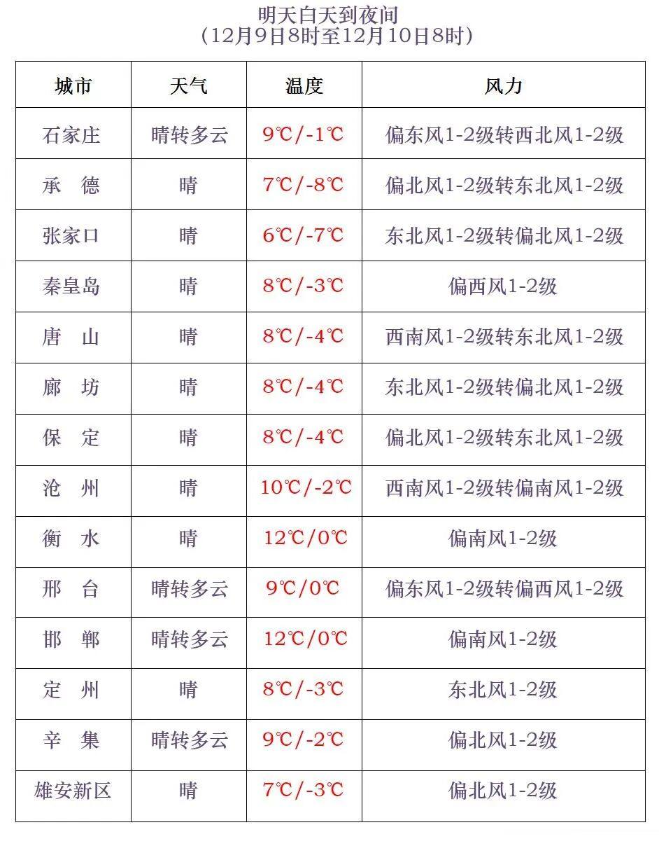 河北省气象台2025年12月08日17时发布天气预报