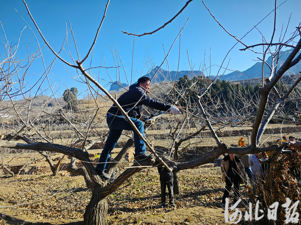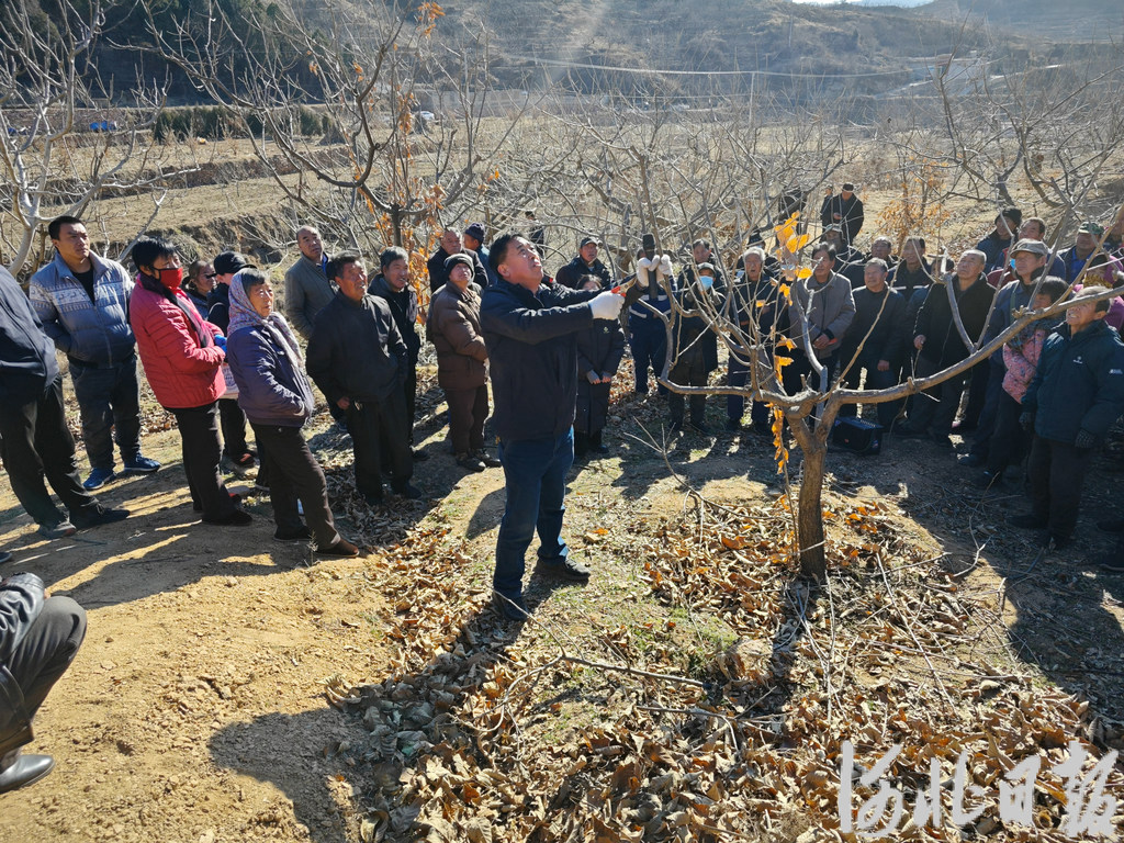 12月4日,邢台市林业局高级农艺师耿新杰教授板栗树修剪技巧。张孟瑶摄