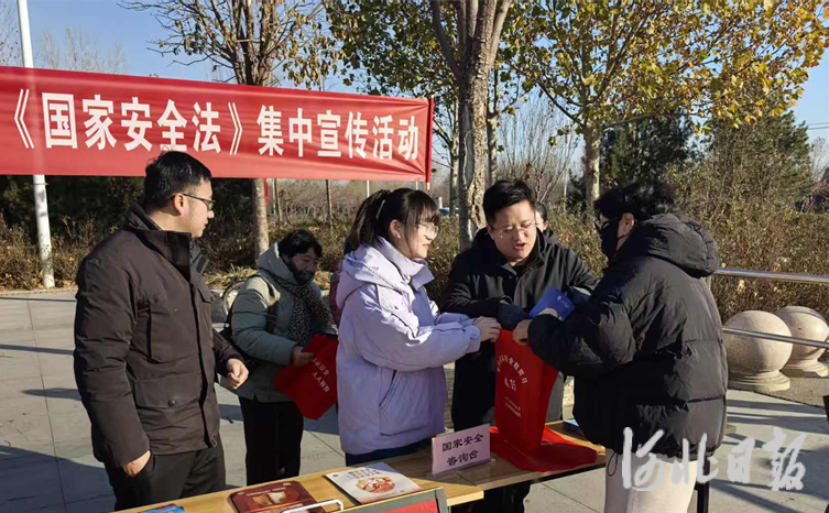 河北日报客户端讯(杨永婵、李安琪)12月4日上午,石家庄市深泽县委办公室、县司法局以国家宪法日为契机,组织全县22个部门在县人民公园开展了宪法、国家安全法集中宣传活动,通过互动式讲解等形式,向群众普及法律知识。