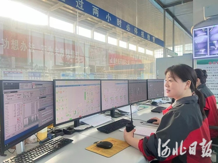 12月3日,在河北锦宝石集团,工作人员通过系统实时跟踪造纸生产线参数。 河北日报、河北日报客户端记者吕若汐摄