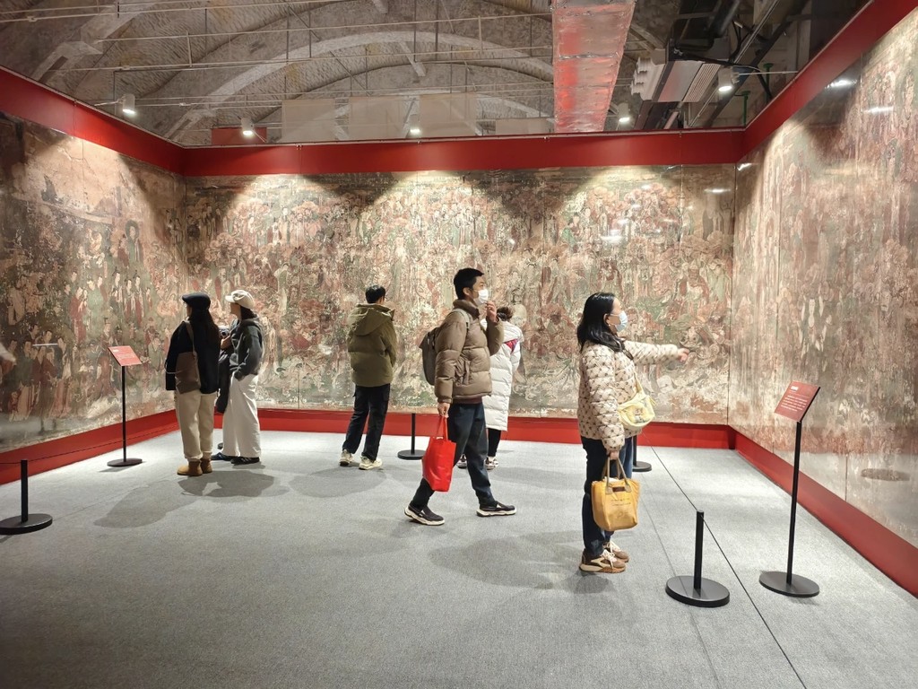 “织音1953”前身是石家庄第一棉纺织厂和第二棉纺织厂旧址,曾见证了石家庄作为“华北纺织工业基地”的辉煌历史,目前以蓬勃的文化活力与创新姿态,成为石家庄乃至河北省的文化新地标。展览着力营造“历史现场”的沉浸语境。观众在由图像、空间与记忆共同构筑的独特场域中,在工业遗存的厚重质感中,触摸古代画师笔下的生命律动,感受千年壁画承载的精神世界,体会古代文明与近现代工业遗产的创造性对话。汉代车马的尘烟、北朝仪仗的威仪、晚唐山水的静谧、明清神佛的庄严,与厂房斑驳的砖墙相映成趣,碰撞出跨越时空的历史回响与艺术火花。