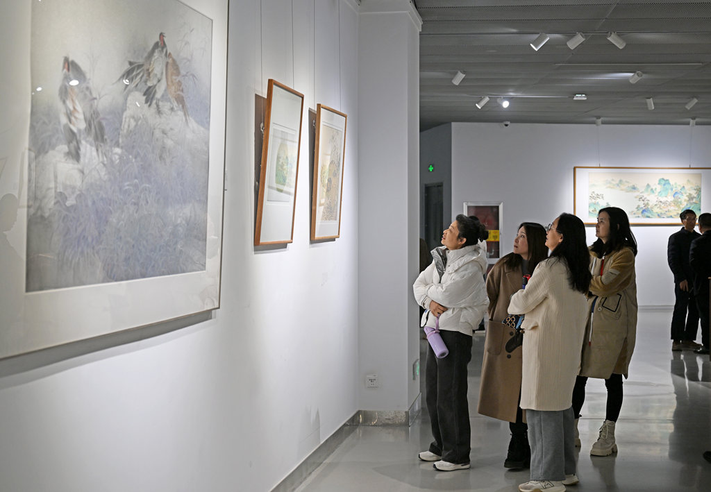 12月9日,“清新俊逸——陈凤壬工笔画展”,在石家庄市图书馆新馆A馆知微展厅开展。观众在欣赏陈凤壬绘画作品。河北日报记者张昊摄