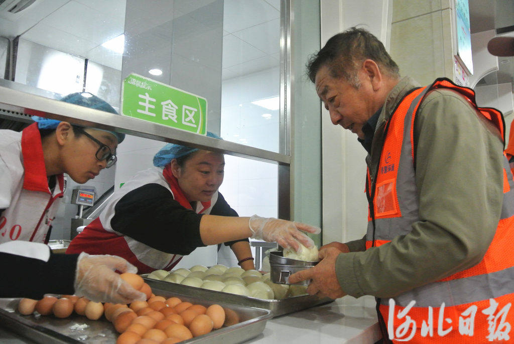 在志愿沧州爱心服务站,志愿者为环卫工人配餐。(河北日报资料片)河北日报记者王雅楠摄