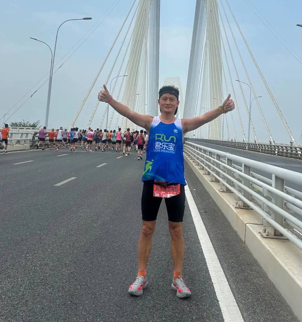 利用假期参加马拉松比赛的刘兆勇