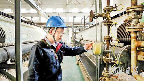 11月12日,沧州临港金诚化工有限责任公司工作人员查看生产设备运行情况。高宁摄