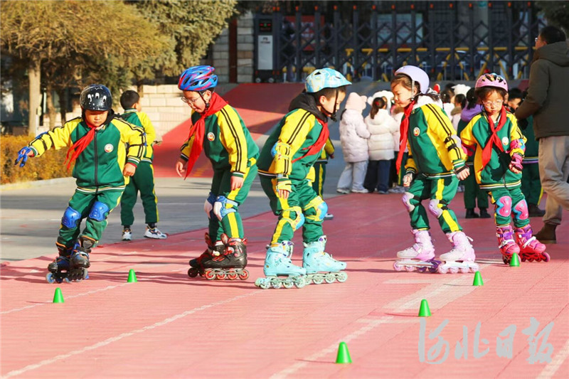 11月18日,张家口市桥东区东风小学学生在进行轮滑训练。岑屹摄