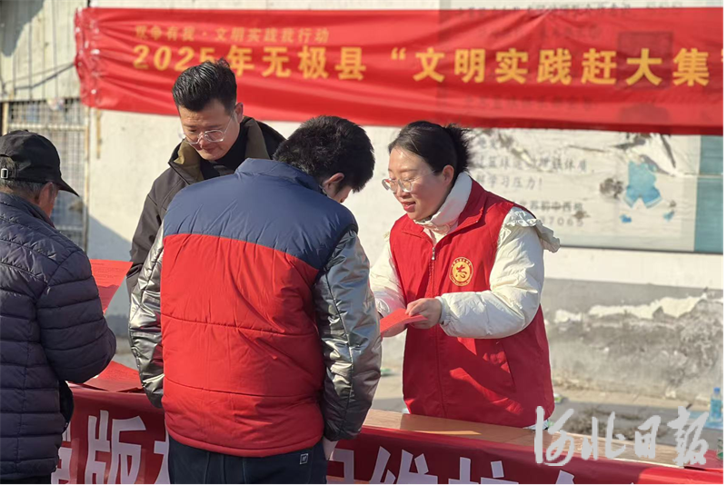 河北日报客户端讯(胡绍阳、梁永红)12月9日,石家庄市无极县北苏镇集市上十分热闹,由无极县委宣传部、无极县新时代文明实践中心牵头,北苏镇党委、北苏镇新时代文明实践所举办的文明实践赶大集活动火热开展。