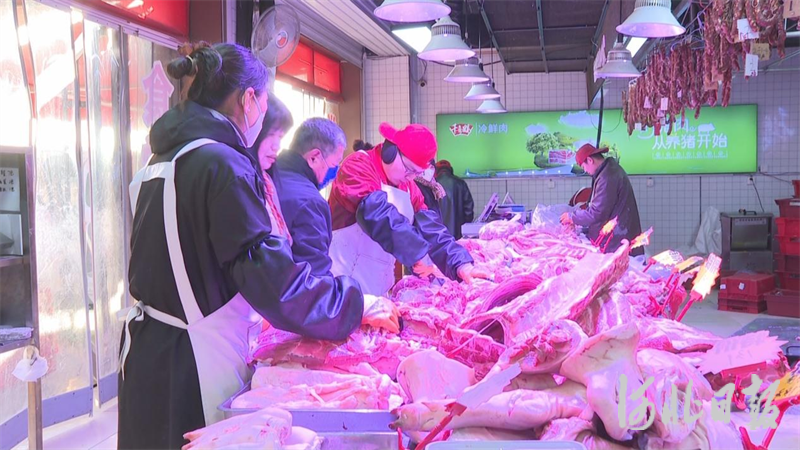 石家庄国际农产品批发交易中心占地1043亩,常驻商户2500余户,是一个全品类、多功能的重要民生保障平台。在蔬菜区,白菜、萝卜、青椒、茄子等市民餐桌上的常见品类一应俱全,货源供应充足。在肉类区,各类肉品同样供应充足,新鲜猪肉、牛肉、羊肉等一应俱全。该市场批发商史旭峰介绍:“为了应对降温降雪天气,我们提前做了充足准备,平时一天到一至两车货,大概有40吨至50吨,今明两天预计到五车货,货源充足,价格稳定。”