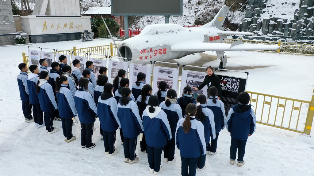 12月13日,邢台市浆水中学学生在参观《人类的浩劫——1937南京大屠杀》史实展。