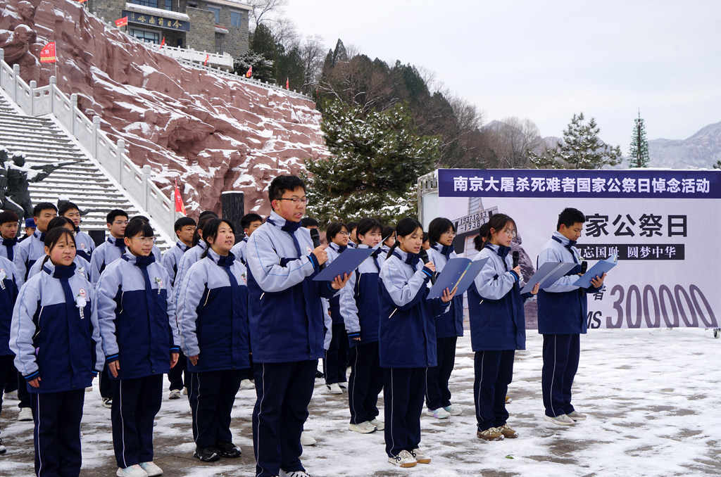 12月13日,邢台市各界群众在中国人民抗日军政大学陈列馆参加南京大屠杀死难者国家公祭日悼念活动。