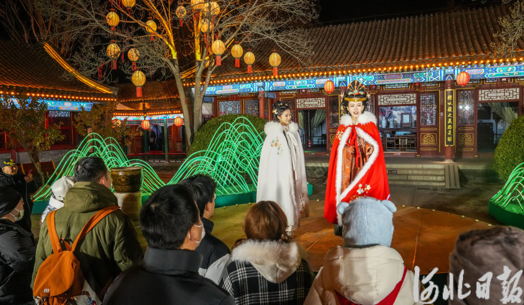 12月14日,游客在正定荣国府景区观看“一梦入红楼”沉浸式夜游演出。河北日报记者 李东宇摄