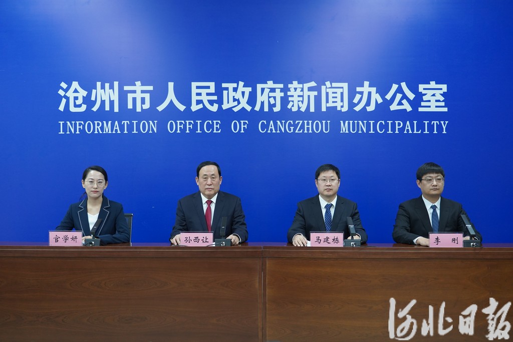 沧州市政府新闻办“高质量完成‘十四五’规划 加快建设现代化沿海经济强市”新闻发布会现场。河北日报记者 戴绍志摄