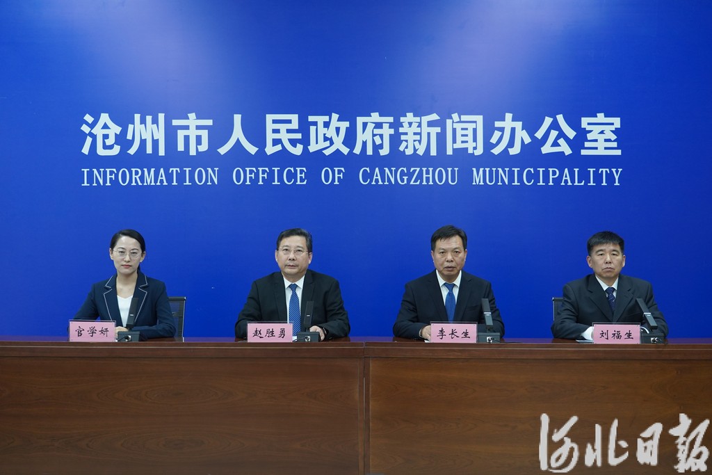 沧州市政府新闻办“高质量完成‘十四五’规划 加快建设现代化沿海经济强市”新闻发布会现场。河北日报记者 戴绍志摄