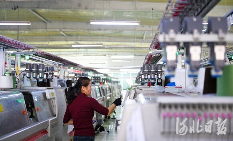 11月25日,在清河县兴利智能针织共享工厂,工人利用数字化一线成型电脑横机生产羊绒服饰。河北日报、河北日报客户端记者赵永辉摄