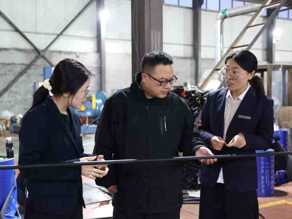 中国银行客户经理(两侧)到远洋线缆公司考察走访。吴新强摄