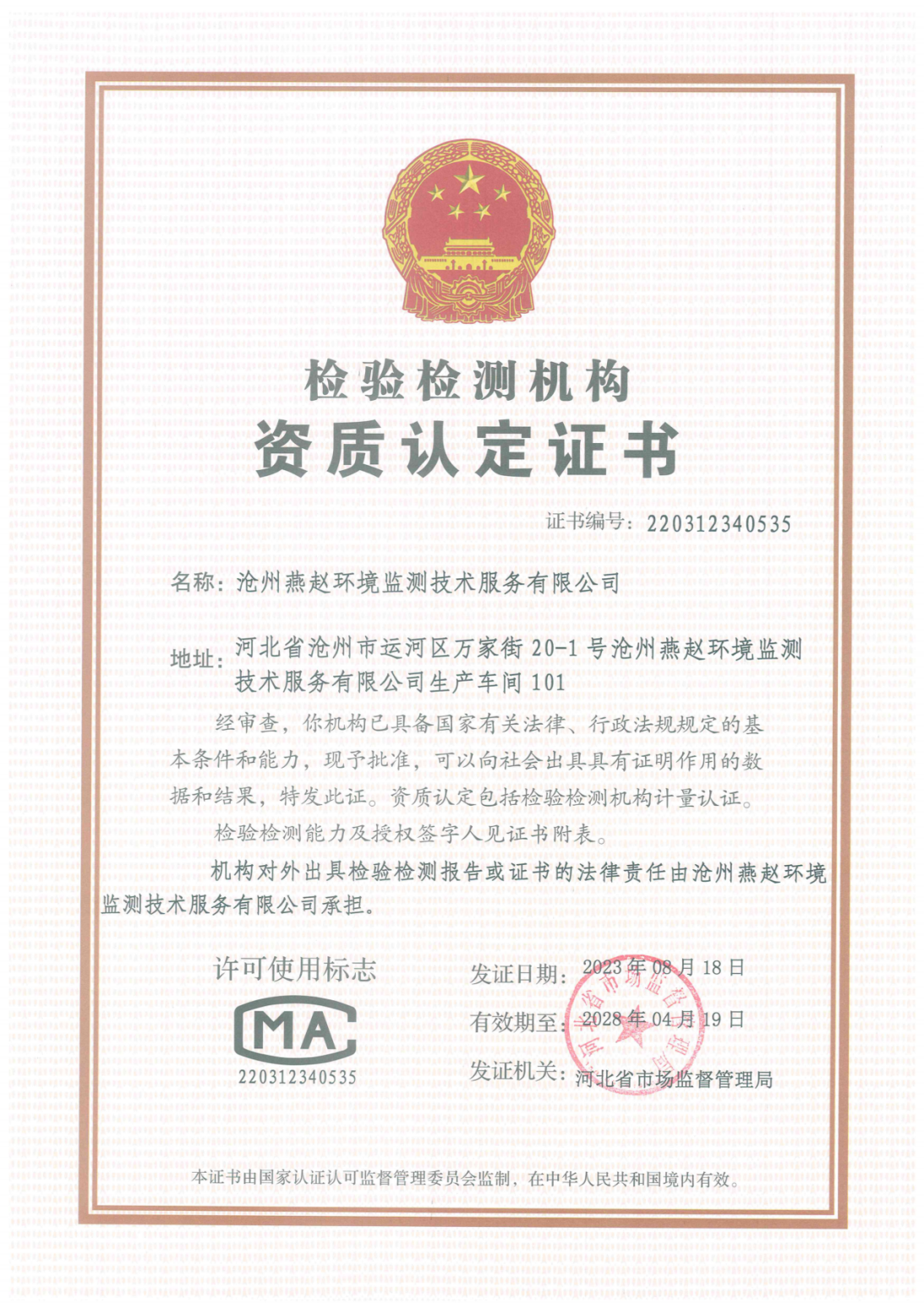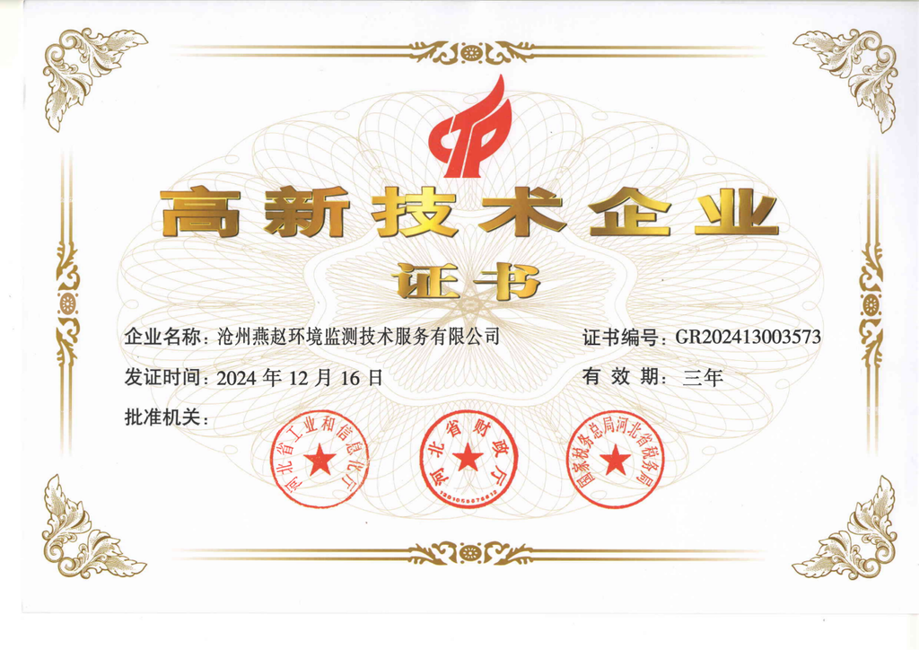在规范化运营与创新发展方面,燕赵环境监测已通过ISO9000质量管理体系、ISO14000环境管理体系、OHSAS18000职业健康安全管理体系认证,以及高新技术企业认证。至今,公司已向国家专利总局提交14项实用新型专利申请,技术创新能力持续提升。成立十年来,公司始终秉承“数据准确、行为规范、检测高效、结果公正”的质量方针,坚守“创造利润、服务客户、回馈社会”的经营目标,严格遵守法律法规,积极响应上级部门关于生态环境保护的工作号召,凭借专业的技术团队与精良的检测设备,为政府监管部门、企业客户及社会各界提供了精准可靠的环境检测数据,在助力污染防治、生态保护修复、环境决策等方面发挥了重要作用,实现了企业发展与社会效益的共赢。