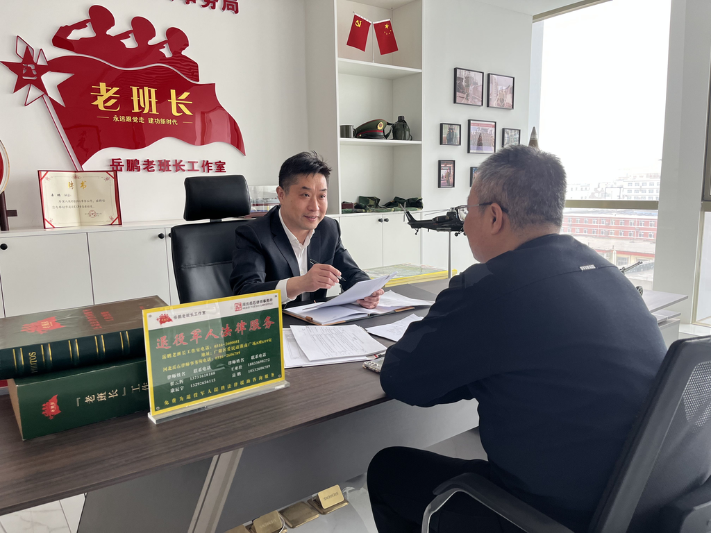 部队生活虽然短暂,战友情谊却深藏心中。2022年7月,经廊坊市退役军人事务局批准,“岳鹏老班长工作室”挂牌成立,岳鹏带领16名律师实行“36524”服务制度,常年坚持为“通武廊”三地退役军人提供法律咨询服务。