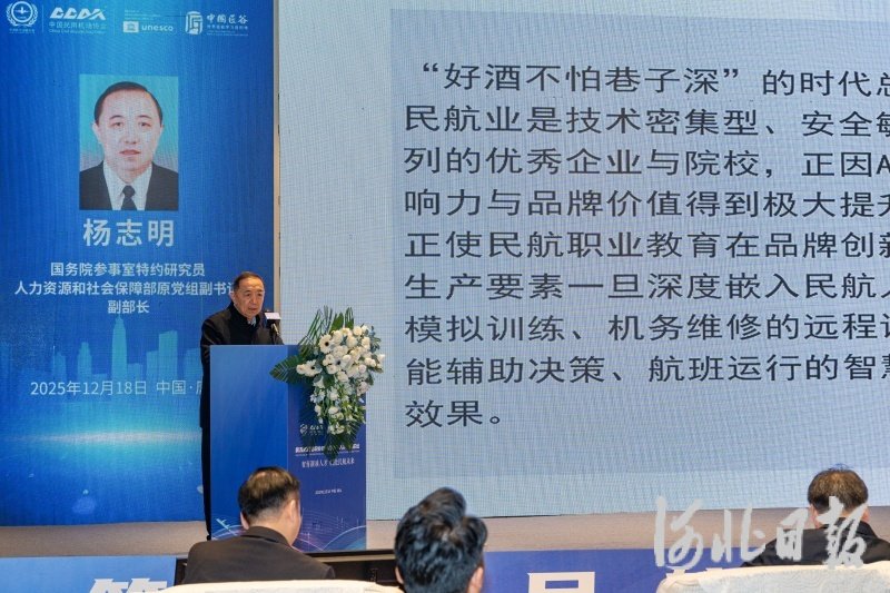 河北日报客户端12月18日讯(李鹏、杨帅、李金花、郭宝强)今天,第五届民航职业教育培训与人才发展论坛在唐山举办。论坛以“智育新质人才 赋能民航未来”为主题,由中国航空运输协会、中国民用机场协会联合主办,中国保信集团协办,曹妃甸职业技术学院、唐山海运职业学院等单位共同承办。近300名专家学者齐聚一堂,共话民航人才培养新路径,共谋产教融合新未来。