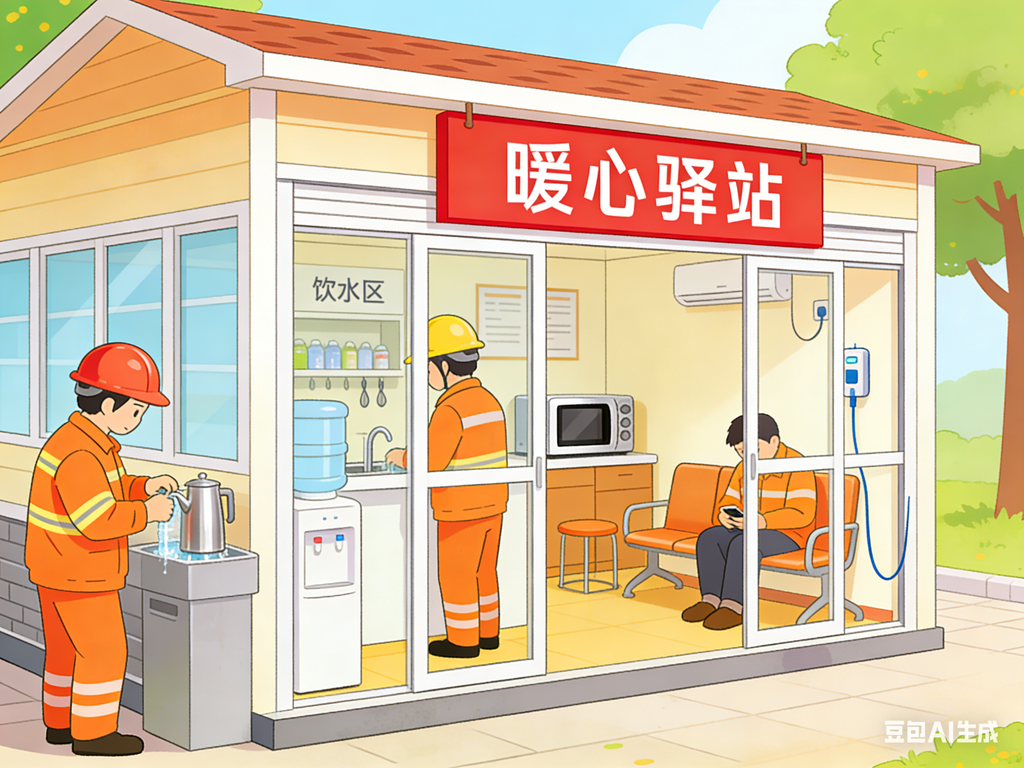 河北省邮政工会启动的“暖蜂行动”,依托“邮爱驿站”为外卖骑手、环卫工人送上“暖蜂包”、热饺子。这些举措不仅解了燃眉之急,更体现出制度化的关怀。