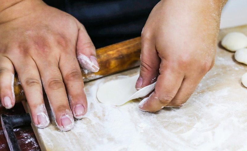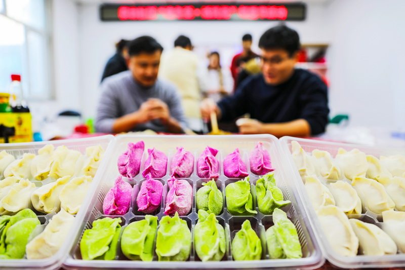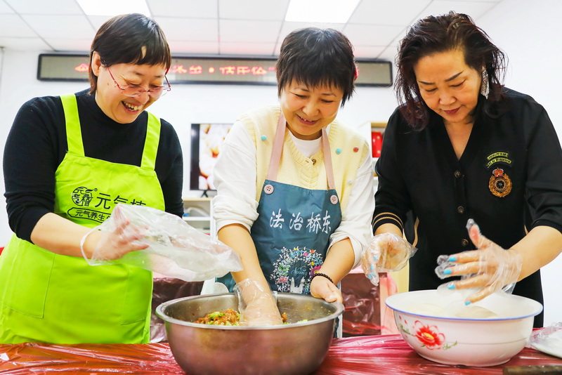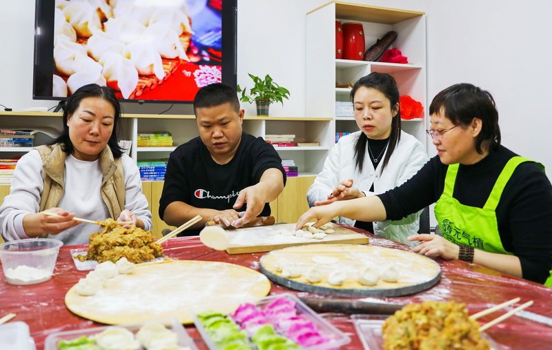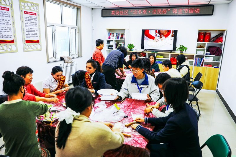 12月17日,张家口市桥东区红旗楼街道茶坊社区居民在包饺子。