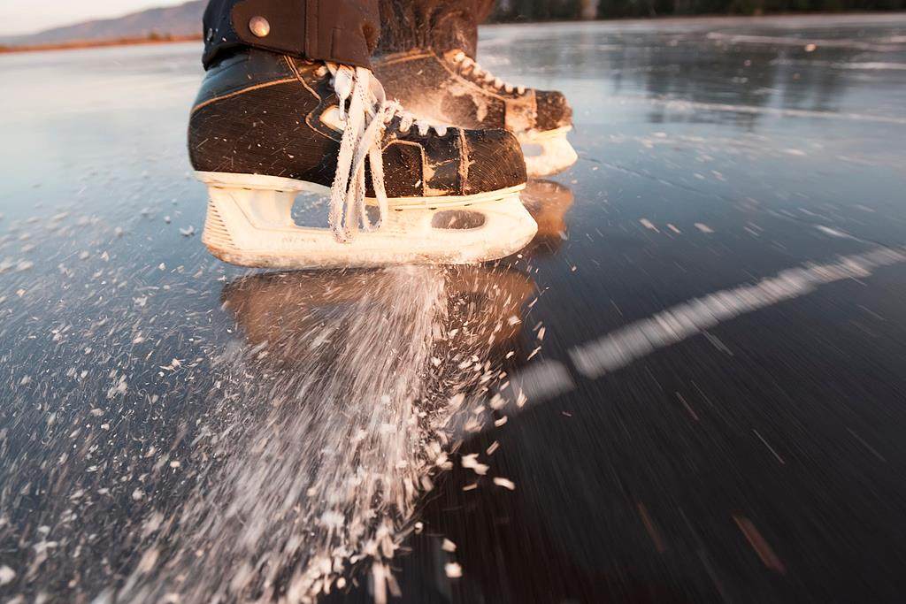 租赁或穿自己合脚的冰鞋,鞋带要系紧,提供足够脚踝支撑。